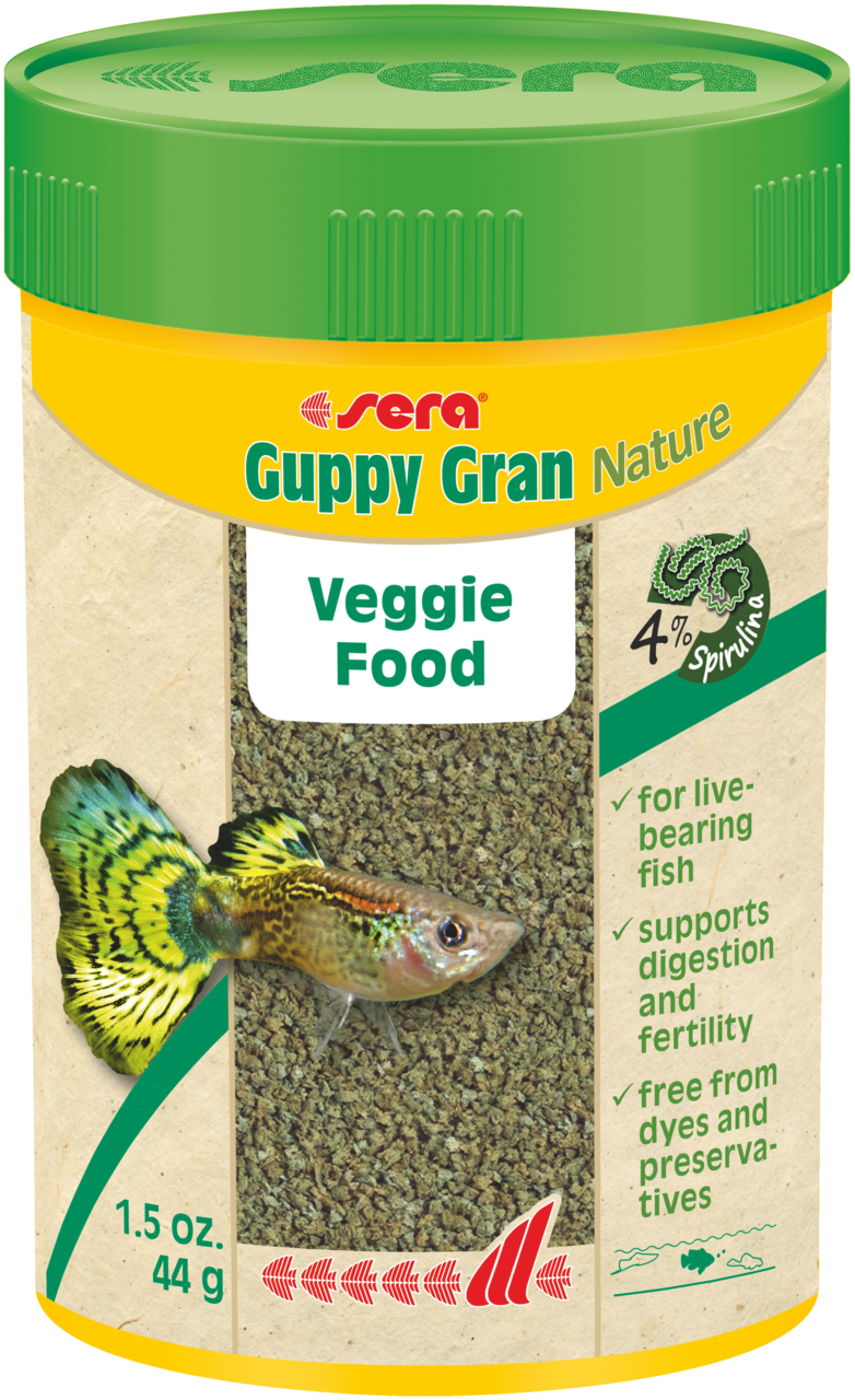 sera Guppy Gran Nature is the veggie food consisting of gently manufactured soft granules without dyes and preservatives for all herbivorous fish that mainly eat in the middle water layers, such as livebearers. This is a great food for herbivorous cichlid fry.