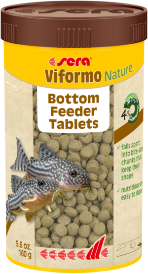sera Viformo Nature is a catfish food without dyes and preservatives consisting of gently manufactured tabs for catfish and other fish that are searching for food at the bottom. The nutritious and easily digestible food contains 4% Gammarus as a high quality protein and mineral substance source. Gammarus is also rich in trace elements and carotenoids. The balanced composition, enriched with sea algae rich in vitamins, supports healthy development and liveliness of the animals. The appropriate nutrition of fish with a small mouth (e.g. armored catfish or loaches) is ensured as the sinking tabs disintegrate into bite-sized chunks while the fish are searching for food at the bottom. The food chunks remain compact and do not cloud the water.